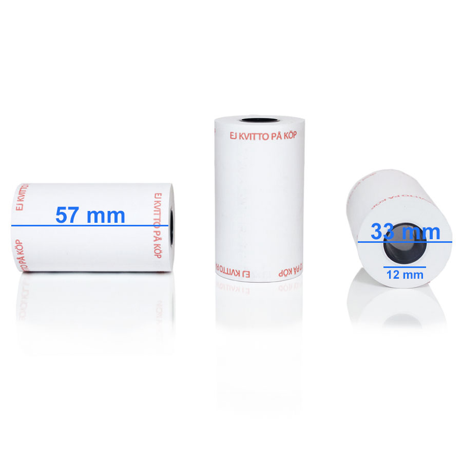 Bisfenolfria kontokortsrullar av högsta kvalité. Kan beställas som 10-pack, 50-pack eller kartong med 100 st rullar. 10 års arkivbeständighet. Förtryckta med texten "EJ KVITTO PÅ KÖP".