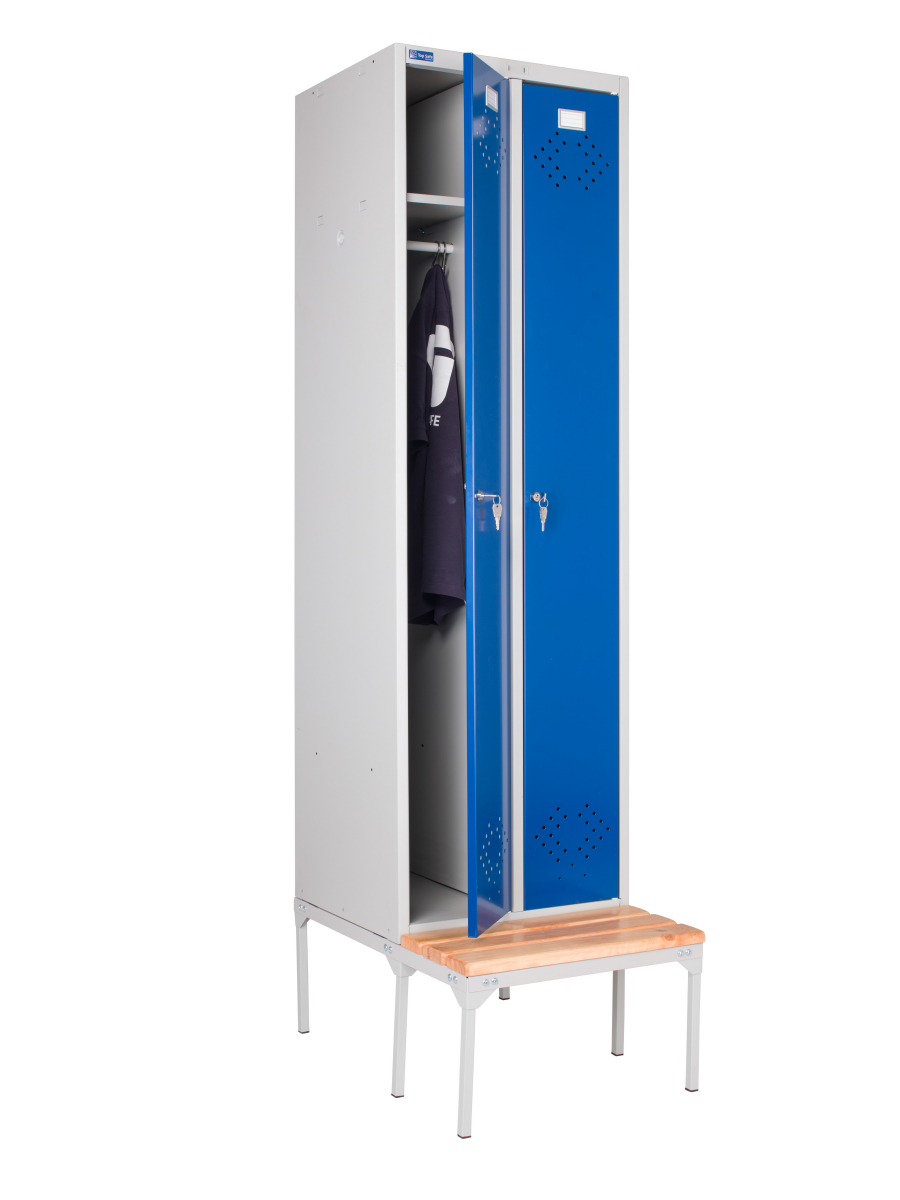 Bänk för klädskåpen ur LS-serien med 2 st skåp i bredd: LS21, LS22, LS24, LS31 & LS34