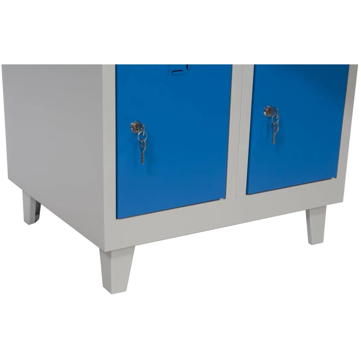 Bensats med 2 par ben till omklädningsskåp och småfacksskåp med 500 mm i djup. Kompatibla med skåpen OS-24, OS-25 samt OS-14 och OS-15. Benen höjer skåpen 120 mm.