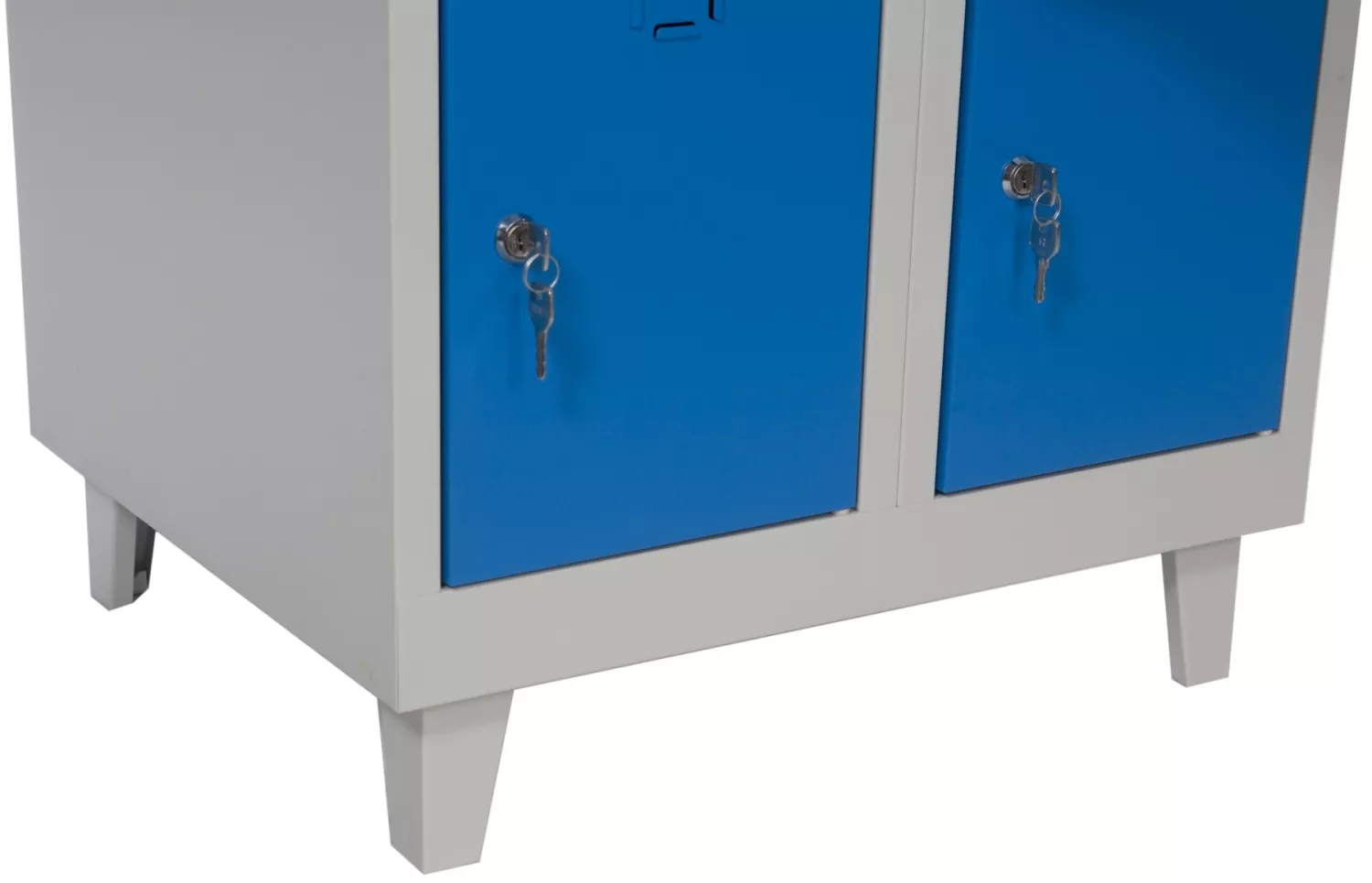 Bensats med 2 par ben till Z-klädskåp med 500 mm i djup. Kompatibla med skåpen Z-71360, Z-71362 och Z-71363. Benen höjer skåpen 120 mm.