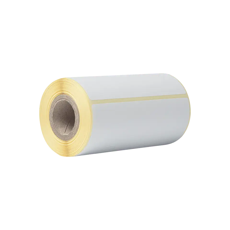 Etikettrulle från Brother med 85 etiketter. Rullen passar bl.a. i etikettskrivaren Brother TD-4D och andra etikettskrivare i samma storleksordning.
