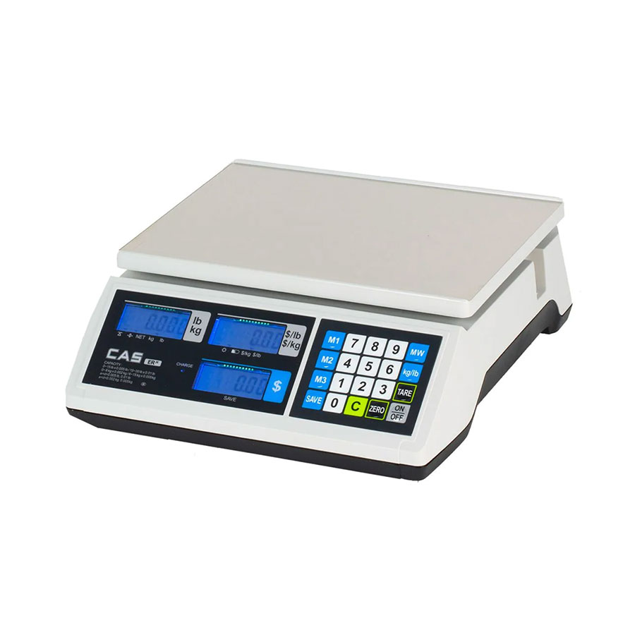 Prisuträknande våg CAS ER JR är en kompakt, användarvänlig och driftsäker våg som är framtagen för kommersiellt bruk och godkänd för handel. Den kombinerar noggrann vägning med smidig prisberäkning och passar utmärkt i butiksmiljöer där snabb och enkel hantering är viktig.