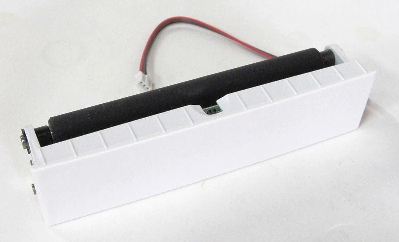 Remsan matas ut från ett munstycke i nederkant (se bild).