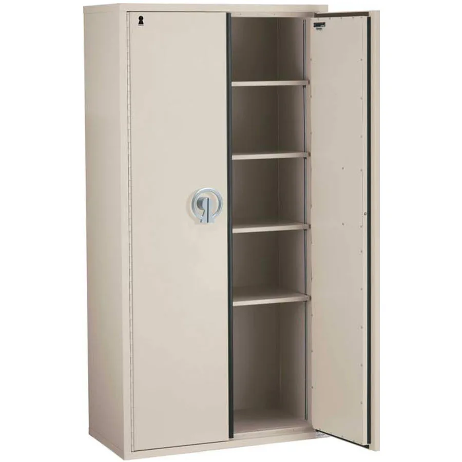 Stort och rymligt, dubbeldörrars dokumentskåp med 60 minuters brandskydd vid 1000°C. Pärlvit beläggning, 4 st hyllplan och plats för upp till 75 st pärmar.