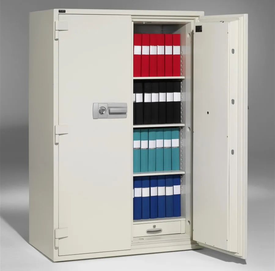 Stort och rymligt dokumentskåp för plats upp till 100 pärmar. Skåpet är brandklassat för 90 minuters brandskydd av pappersdokument i upp till ca. 1000°C. Lämpar sig utmärkt till förvaring av viktiga affärshandlingar, avtal, kontrakt, korrespondens och bokföringsmaterial i pärmar.