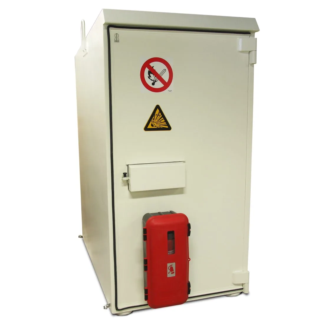 Sprängsäkert dynamitskåp för förvaring av explosiva varor. Rymmer lastpallar
