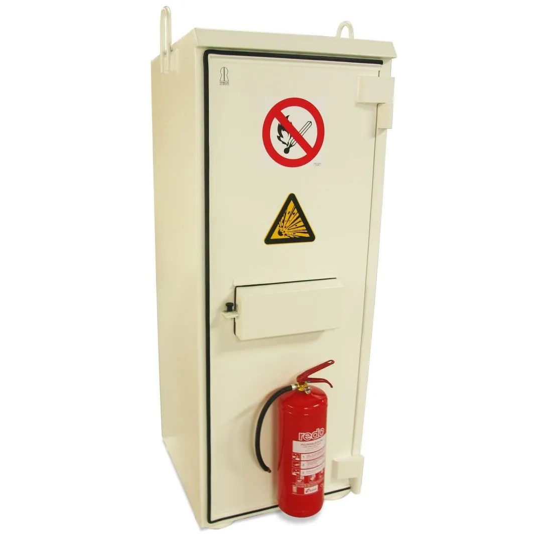 Skåpet är extremt robust. Skåpet levereras som standard med nyckellås, men vid förfrågan går kombinationslås eller elektroniskt kodlås att installera. Skåpväggarna är armerade och består av en isolering av fast gjutgods. Låskolvarna är av en typ som säkerställer att skåpet är förseglat oberoende av gångjärnens status. Skåpdörrens regelverk är utrustat med borrskydd, vilket låser regelverket vid angreppsförsök.