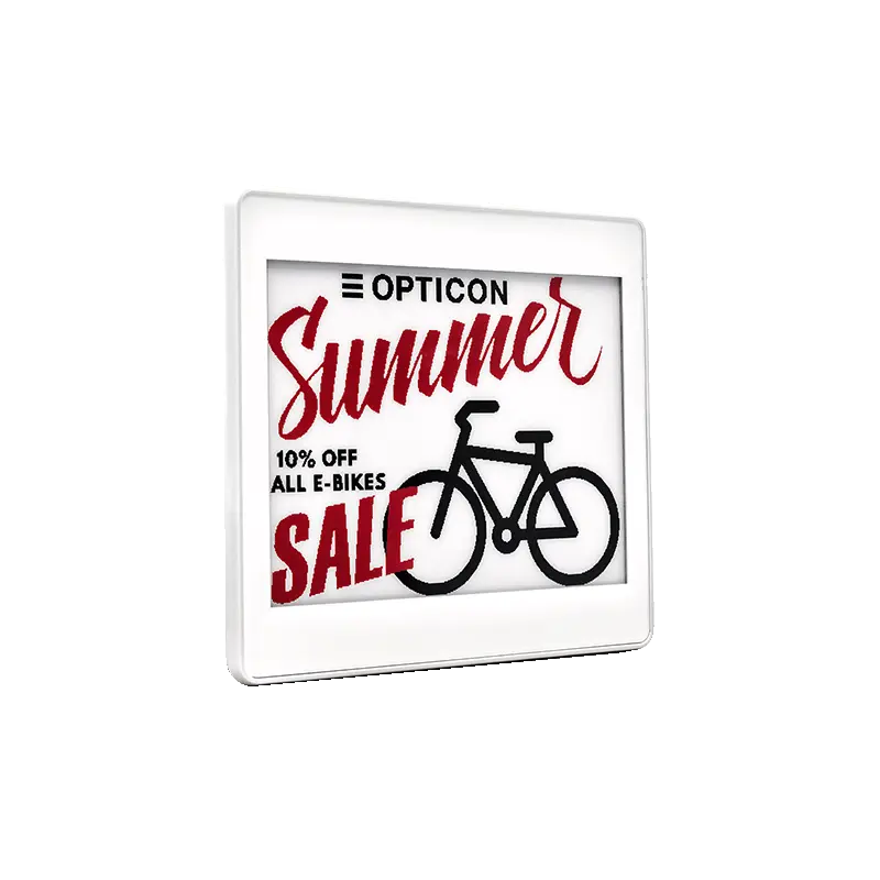 Opticon EE-420R är Opticons 4,2 tums elektroniska hyllkantsetikett (ESL, Electronic Shelf Label) som utnyttjar e-papperteknologi (så kallat e-ink). Elektroniska etiketter möjliggör snabbare prissättning och marknadsföring och kan förbättra konsumentens shoppingupplevelse. Det enda som behövs för att installera och använda i din butik är en basstation (EBS-50) som kommunicerar med etiketterna trådlöst.