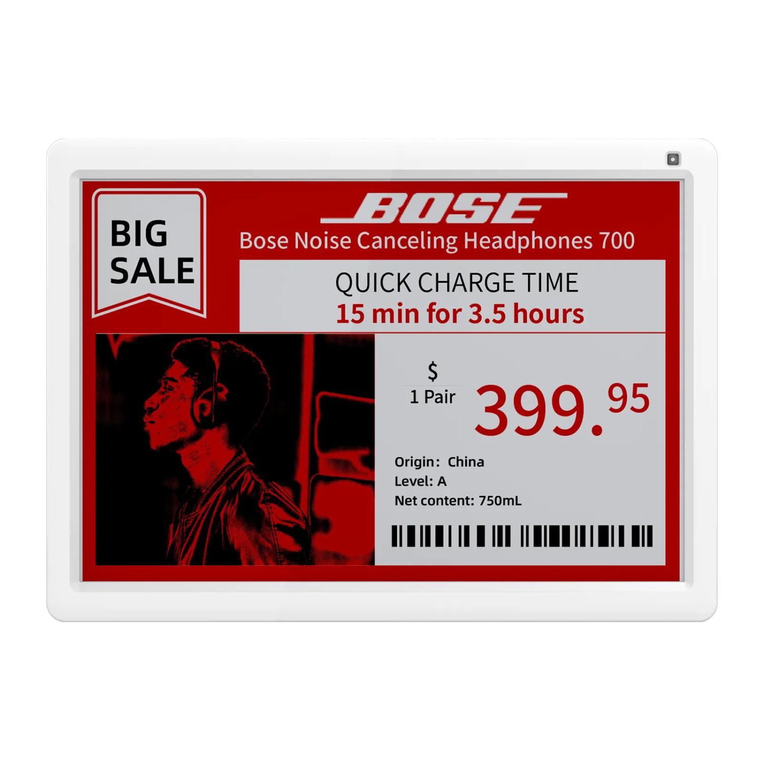 11,6" elektronisk ESL-skylt med 3 färger (svart, vit, röd) för butiker. Används med Opticon EBS-50 basstation.