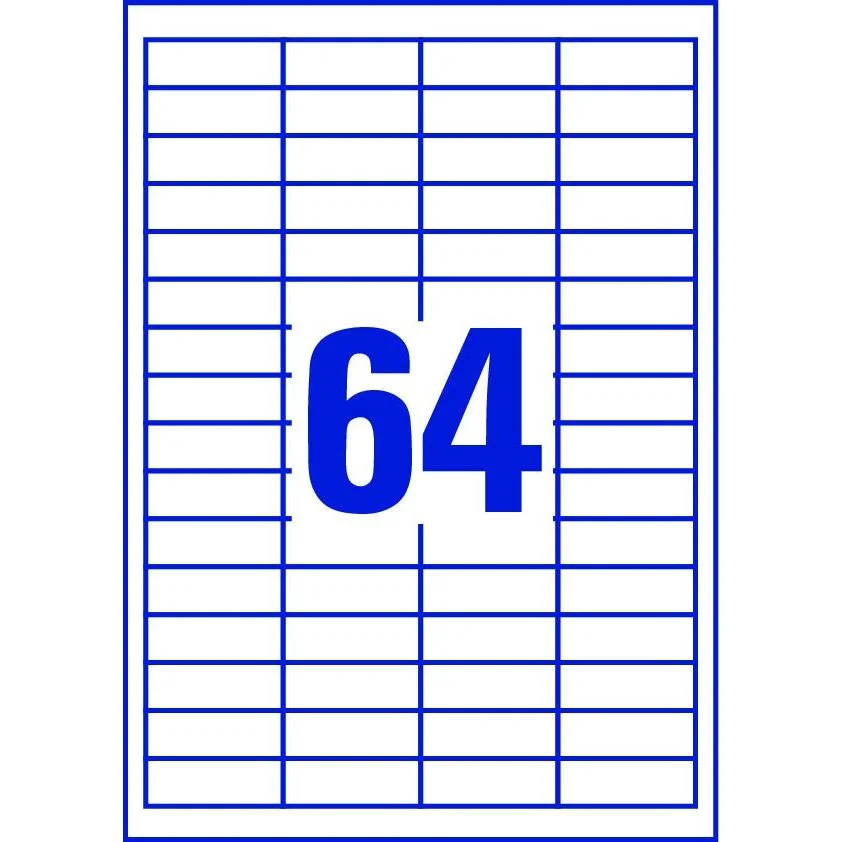 Etiketter på A4-ark, 48,5x16,9 mm, 64 etiketter/ark