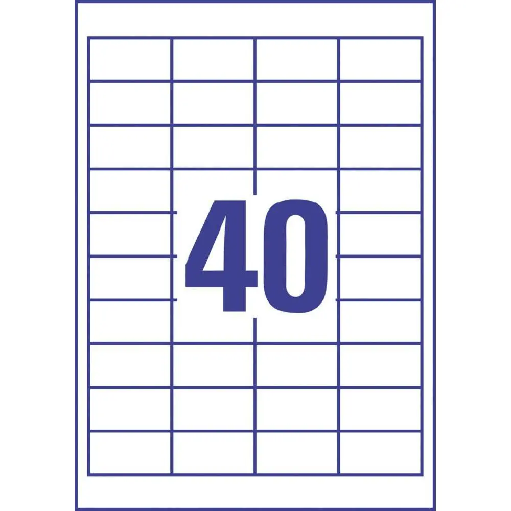 Klisteretiketter på A4-ark, 48,5x25,4 mm, 40 etiketter per ark