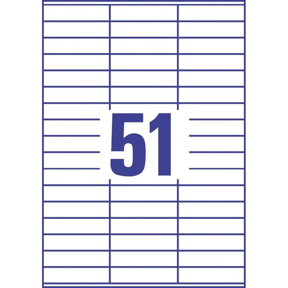Klisteretiketter på A4-ark, 70x16,9 mm, 51 etiketter per ark