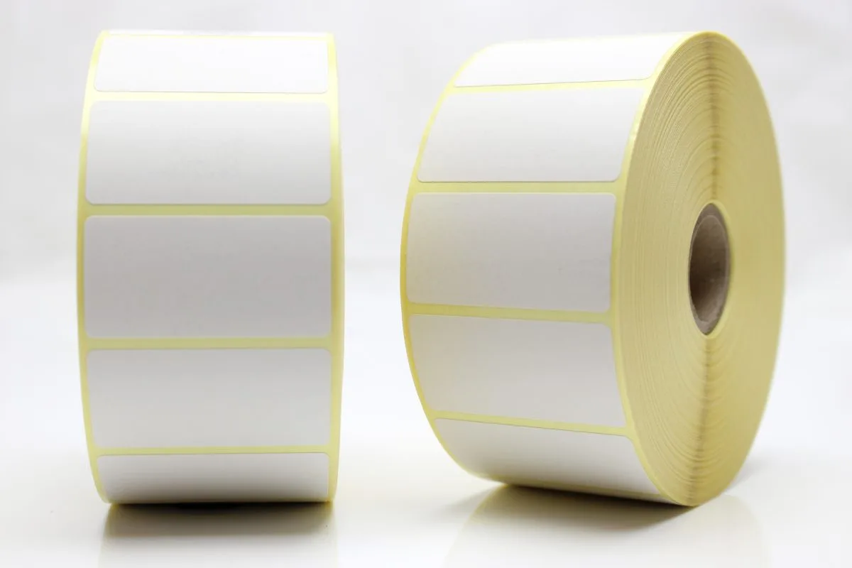 Etikettrulle med 2580 etiketter. Rullen passar bl.a. i etikettskrivaren Zebra GK420d och andra etikettskrivare i samma storleksordning.