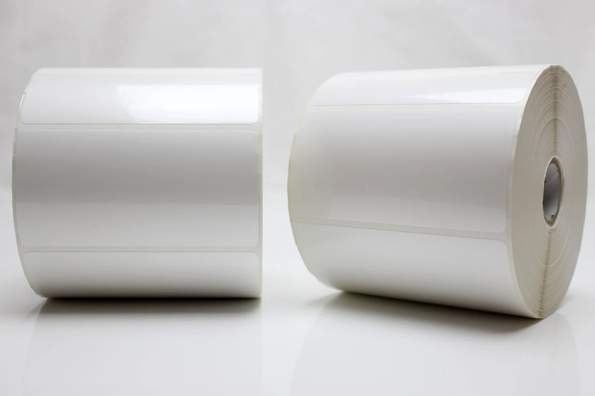 Etikettrulle med 1370 st syntetiska (polyester) etiketter med en fin, högblank yta och högpresterande häftämne.