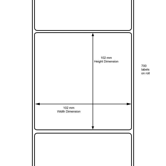 Klisteretiketter på rulle, 102x102 mm, 700 st/rulle, 25,4 mm spole. Z-Select 2000D. Passar vanliga termoskrivare såsom Zebra ZD421d.