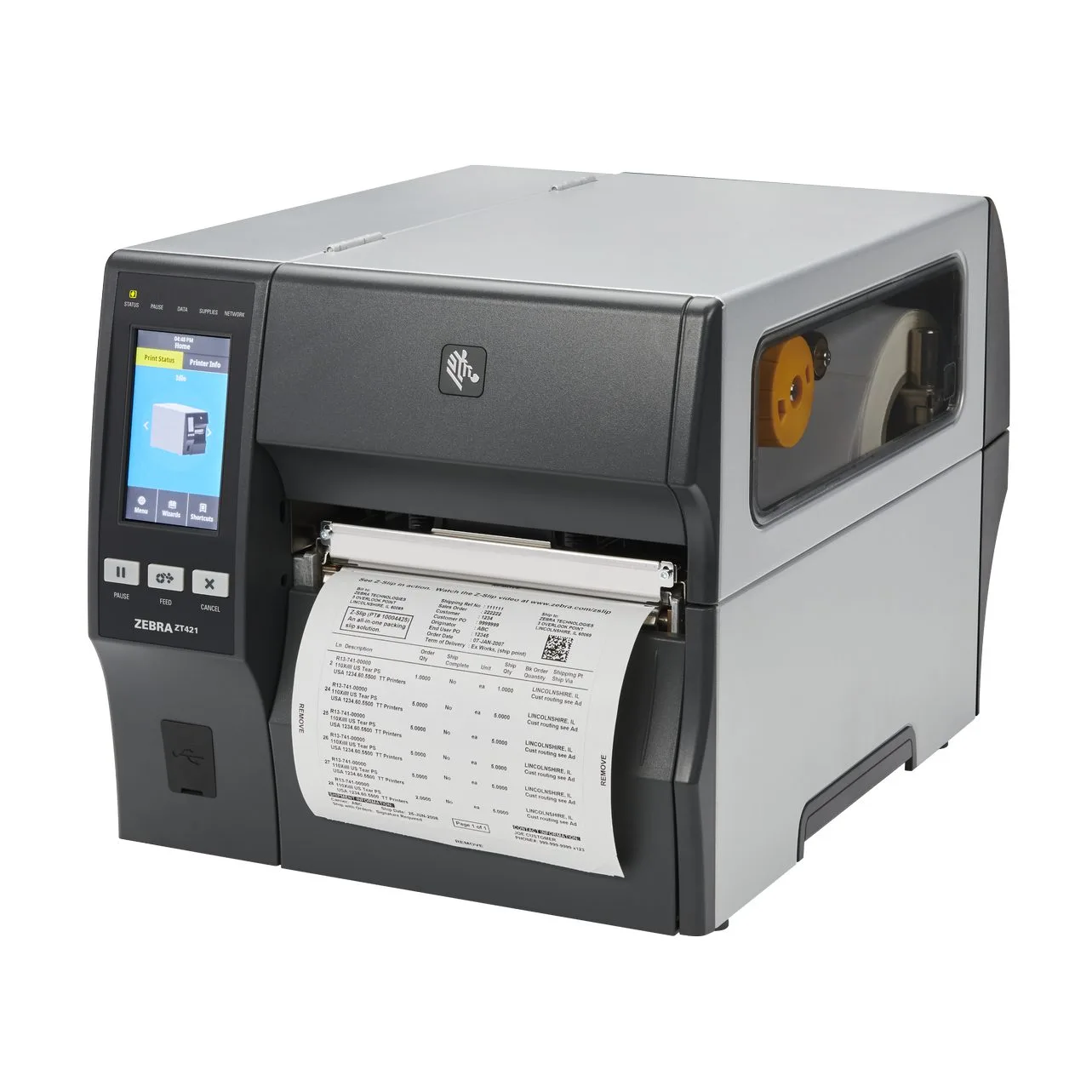 ZT421 skriver etiketter mellan 51 och 168 mm i bredd, antingen med TT- eller DT-teknologi. Att byta rullar och färgband är otroligt enkelt, tack vare skrivarens intuitiva lock, som viks uppåt och exponerar etikett- och färgbandsspolarna. Fönstret på skrivarens högersida ger dig full koll på rullarnas status, i kombination med en LCD-display med knappar på skrivarens framsida, för information om skrivarstatus och konfiguration av inställningar.