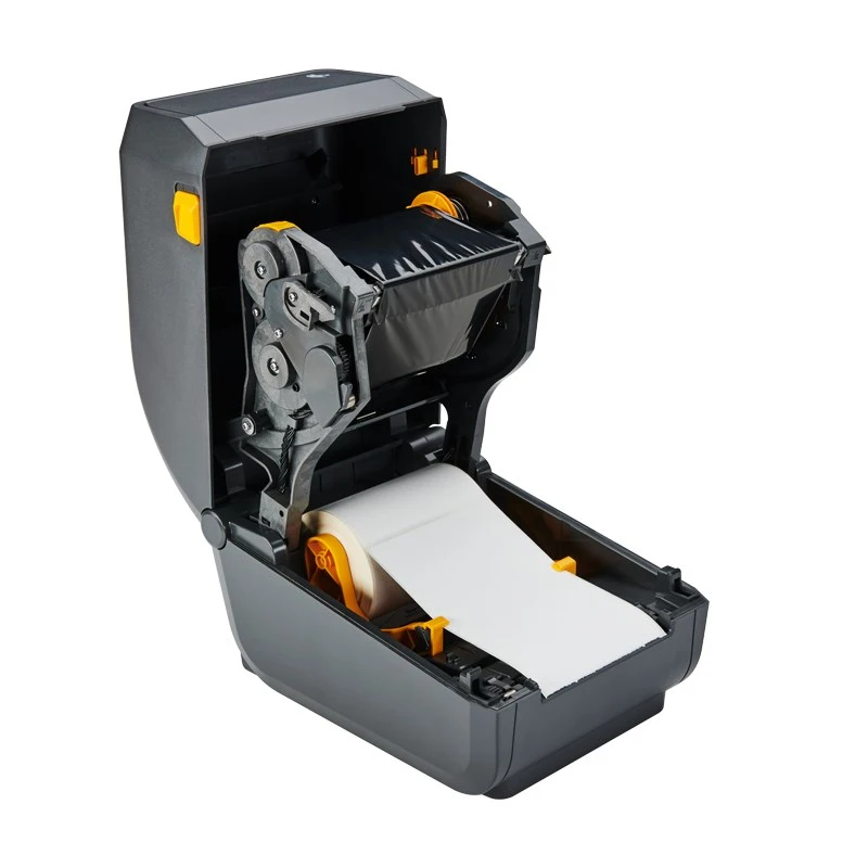 Skrivaren har en enda knapp på ovansidan och en LED-lampa för status, vilket gör den enkel att använda. ZD230t kan hantera en 300-meters färgbandsrulle för att förlänga tiden mellan mediabyten, och Zebras OpenACCESS™-design med uppfällbart lock underlättar mediabyte.