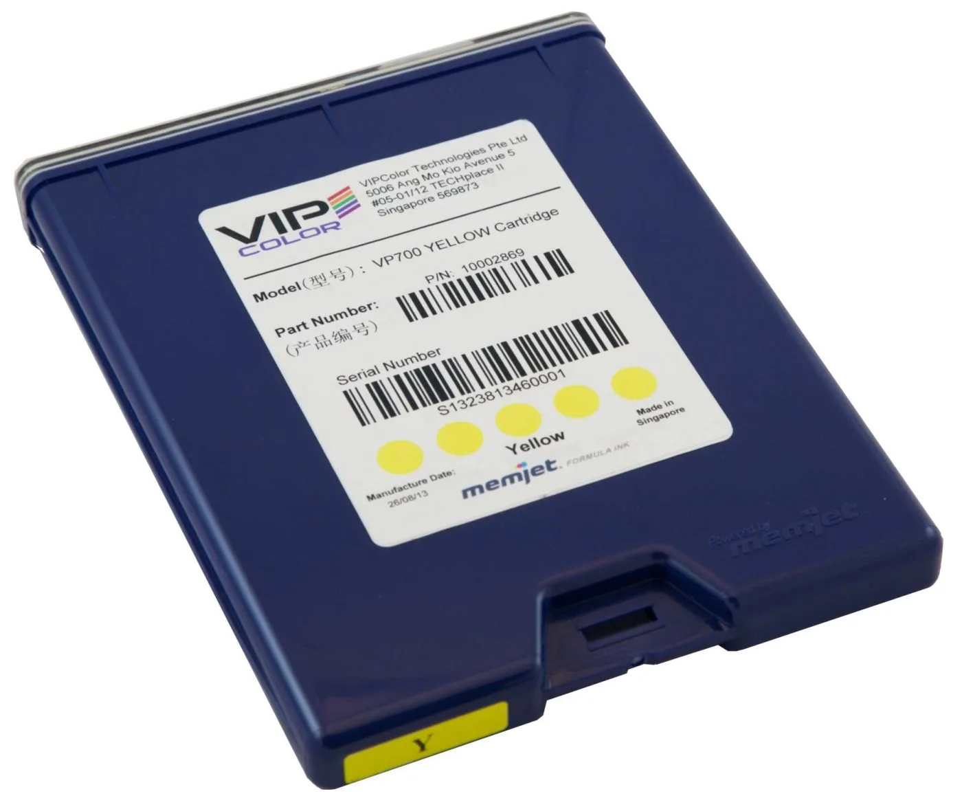 Färgpatron med gul färg för etikettskrivare VP700. Färgpatronerna säljes i 5-pack och passar till etikettskrivaren VIP Color VP700.