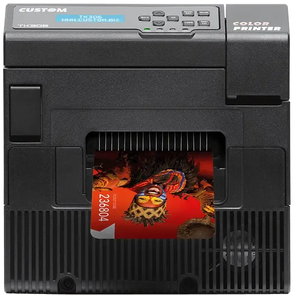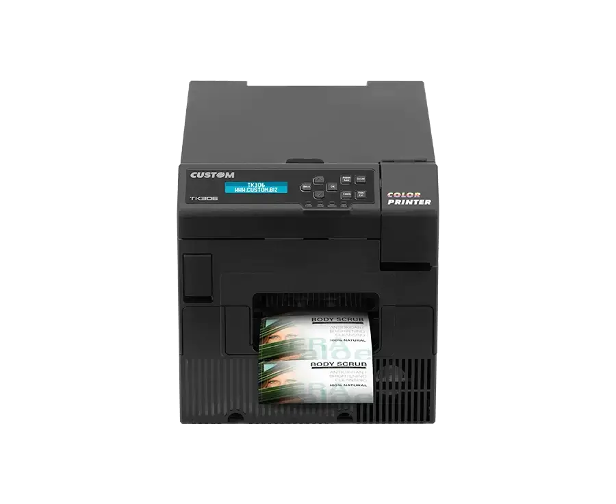 TK306 är en unik färgskrivare för etiketter från Custom. Till skillnad från sina konkurrenter så använder TK306 färgtoner istället för bläckpatroner, vilket avsevärt ökar flexibiliteten i skrivaren och möjligheten att printa på olika typer av material. Skrivaren är utrustad med USB-anslutning och LAN (ethernet), och har en tydlig display för meddelanden och inställningar. TK306 kan printa i hela 1200 dpi, vilket ger snygga och skarpa utskrifter.
