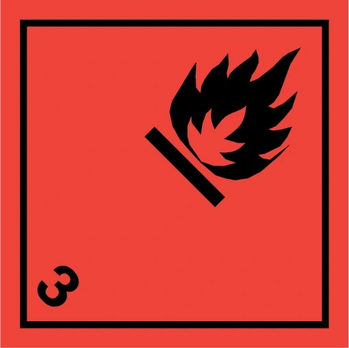 Farligt gods-etikett för brandfarliga vätskor, 100x100 mm