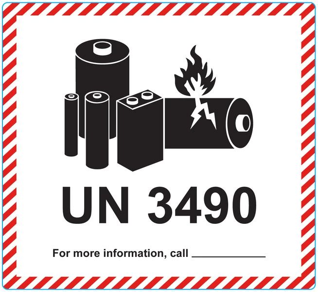 Farligt gods-etikett för batterier (UN3490), 120x110 mm