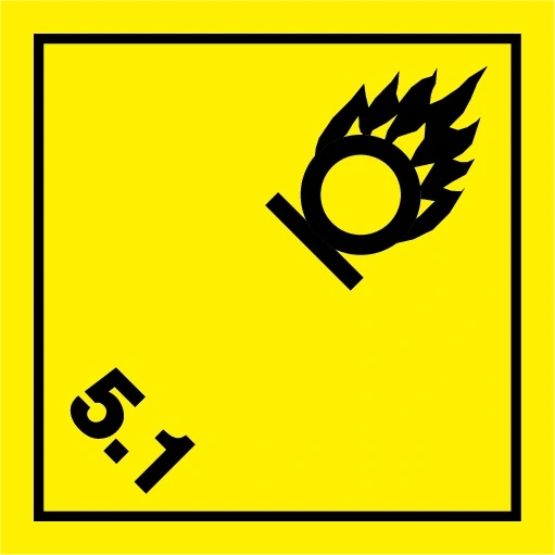 Farligt gods-etikett för oxiderande ämnen, 100x100 mm