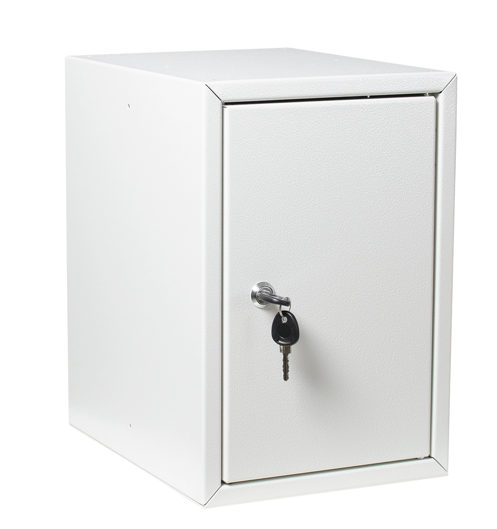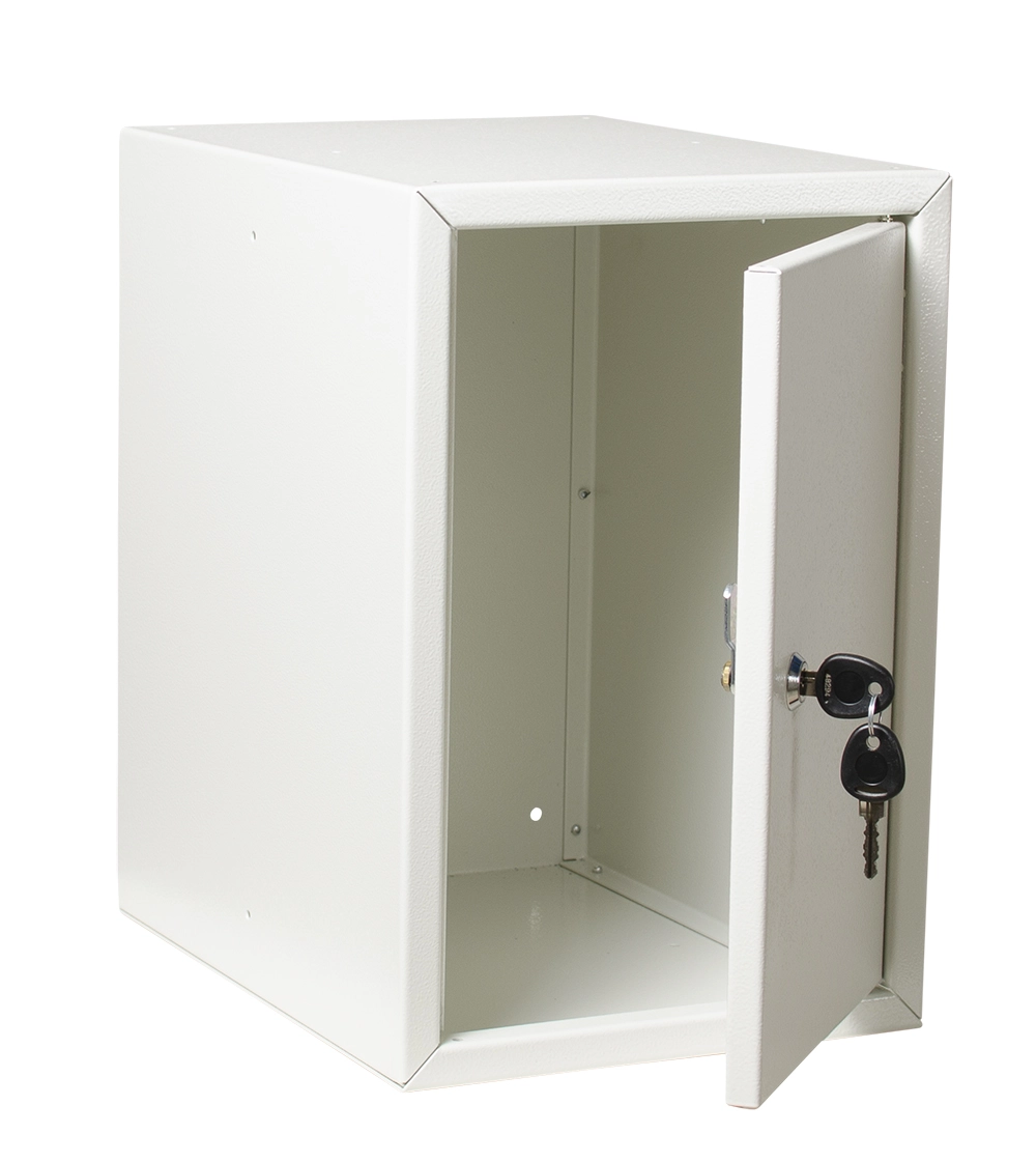 Skåpdörren är utrustad med nyckellås (cylinderlås) med 2 st medföljande nycklar.