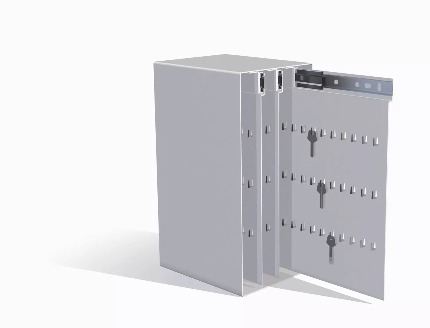 Nyckelkassett med 168 krok för fristående användning eller för placering i säkerhetsskåp ur PROF-serien bl. a. Kassetten är utrustad med 3 st utdragbara vingar med nyckelkrokar.