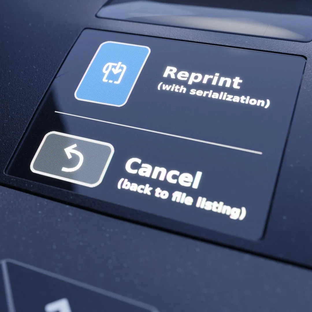 - Återutskriftsfunktion: Enkelt återutskrift med fortsatt inkrementering av nummer.