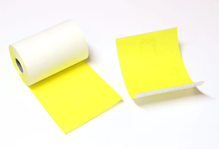 Rullen är gul på ena sidan och vit på andra sidan. Den vita sidan är trycksidan.