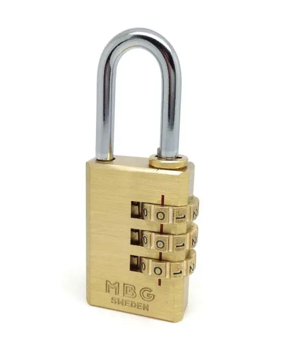 Hänglås med kombinationslås, 3 siffror, i mässing och härdat stål