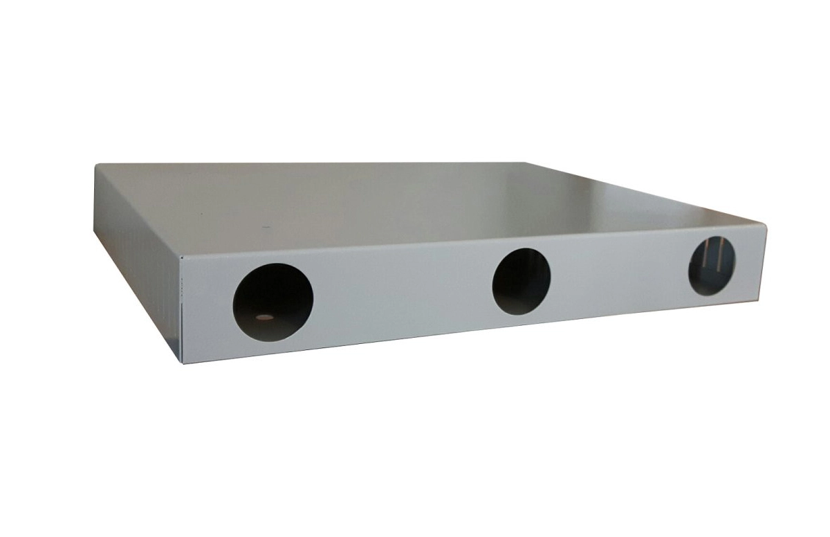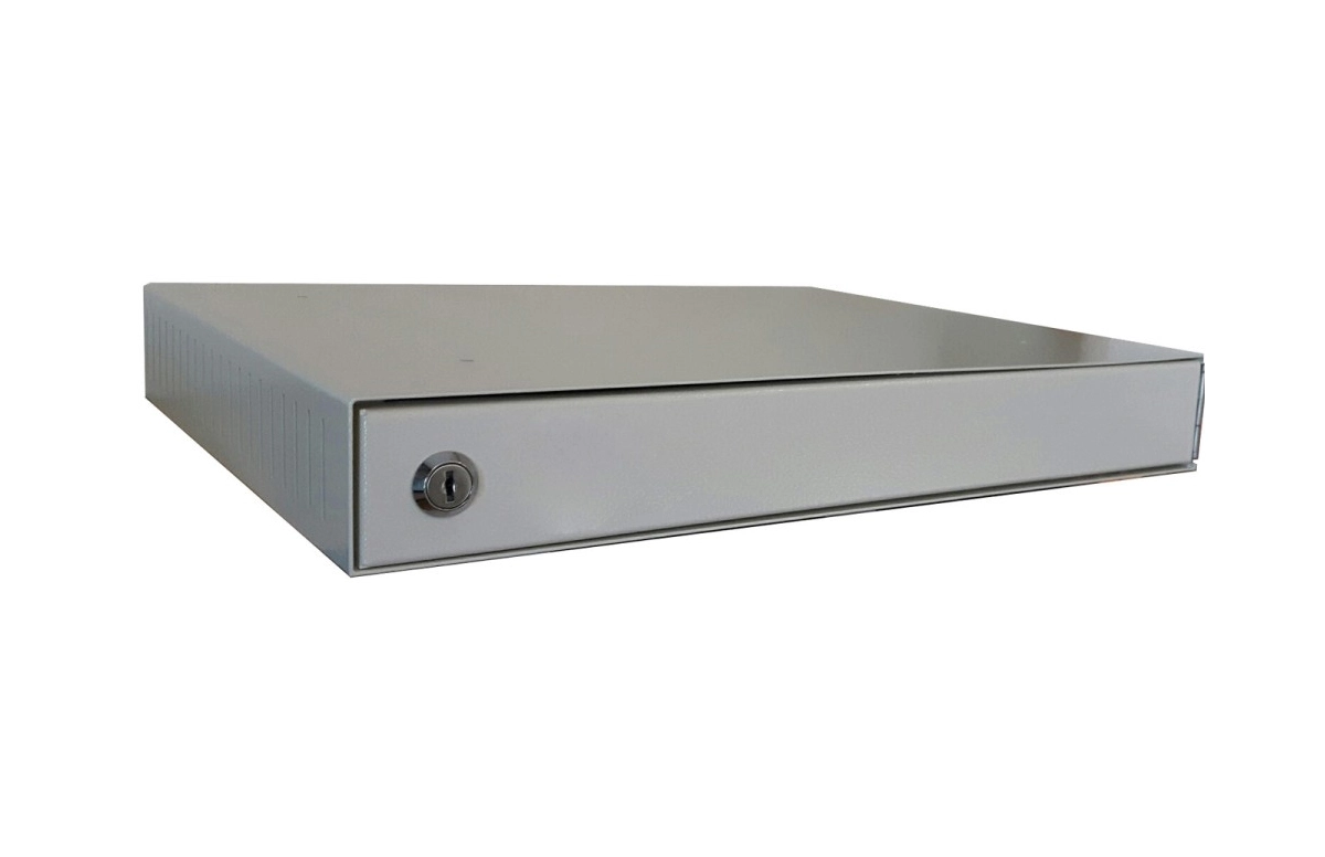 Innovativt skåp för kameraservrar. Utformning och design gör det möjligt att placera eller gömma under t.ex. en bänk eller hylla. Skåpet är utrustat med 4 st förankringshål i bottnen och taket.