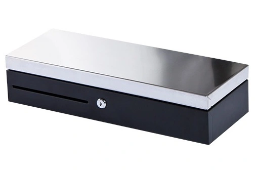 Mycket fin kassalåda med toppöppning. Lådan kommer i svart och locket i mönstrat silver. Bra kvalité och robust utformning borgar för pålitlig användning.
