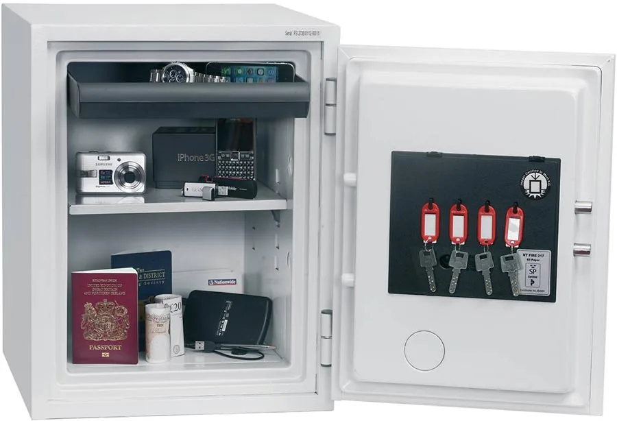Skåpen är testade att skydda pappersdokument i 60 minuter vid ca. 1000°C värme. Skåpdörren är utrustad antingen med ett nyckellås, eller med ett elektroniskt kodlås, två låskolvar, samt 4 st nyckelkrokar på dörrens insida. Rymmer upp till 5 st pärmar.
