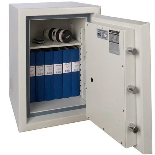 Gediget kassaskåp med 2 timmars brandskydd och kraftigt stöldskydd