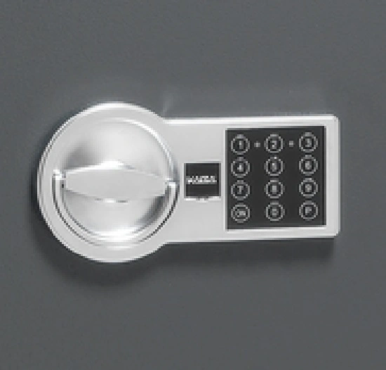 Skåpet har en snygg och elegant design med en grå hammarlack och 6 st bastanta låskolvar. Skåpet är även förberett för bultning i golv och har ett inbyggt elkodlås.