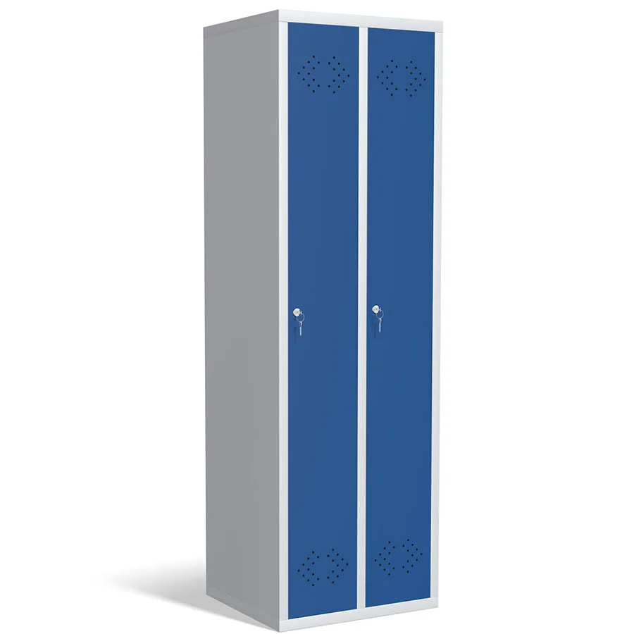 Skåpstommen har en benvit beläggning (RAL 7038), och skåpdörren en trevlig blåfärg (RAL 5002) som är lätt för ögonen och indikativ för klädskåp.