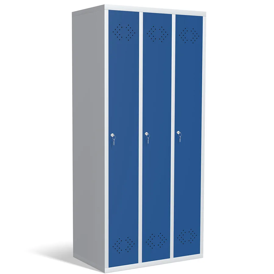 Skåpstommen har en benvit beläggning (RAL 7038), och skåpdörren en trevlig blåfärg (RAL 5002) som är lätt för ögonen och indikativ för klädskåp.