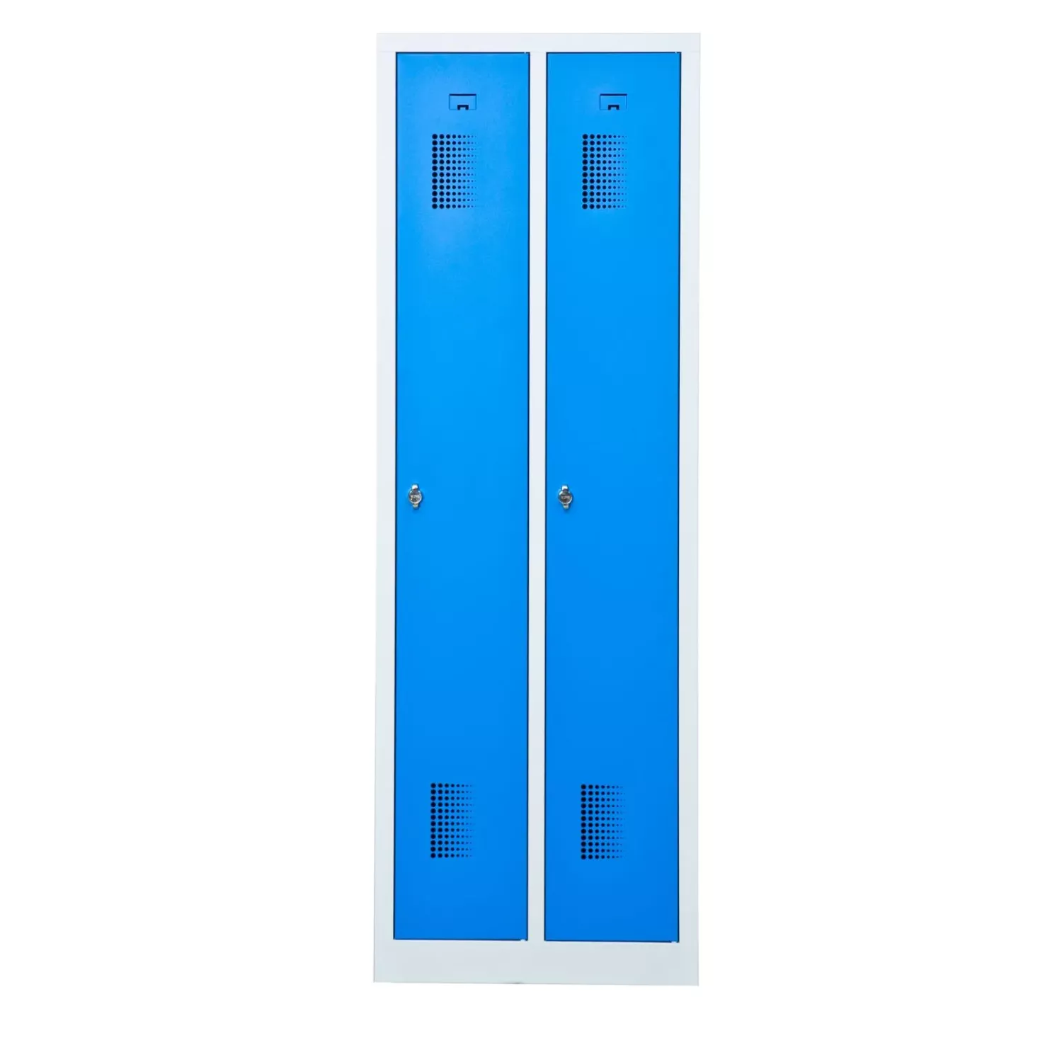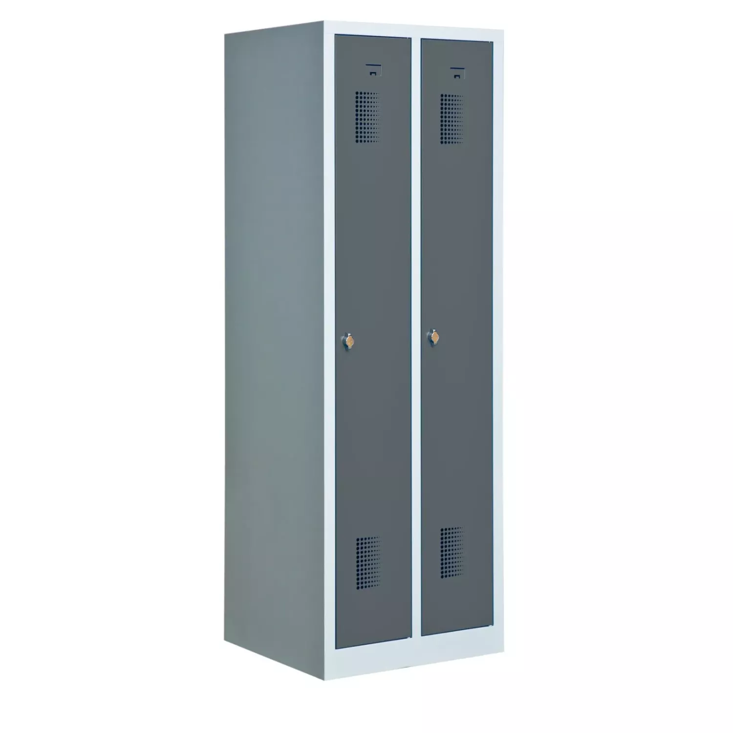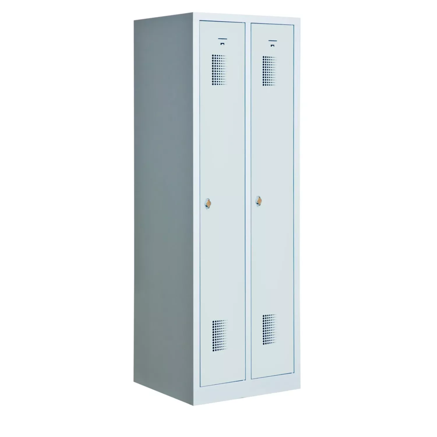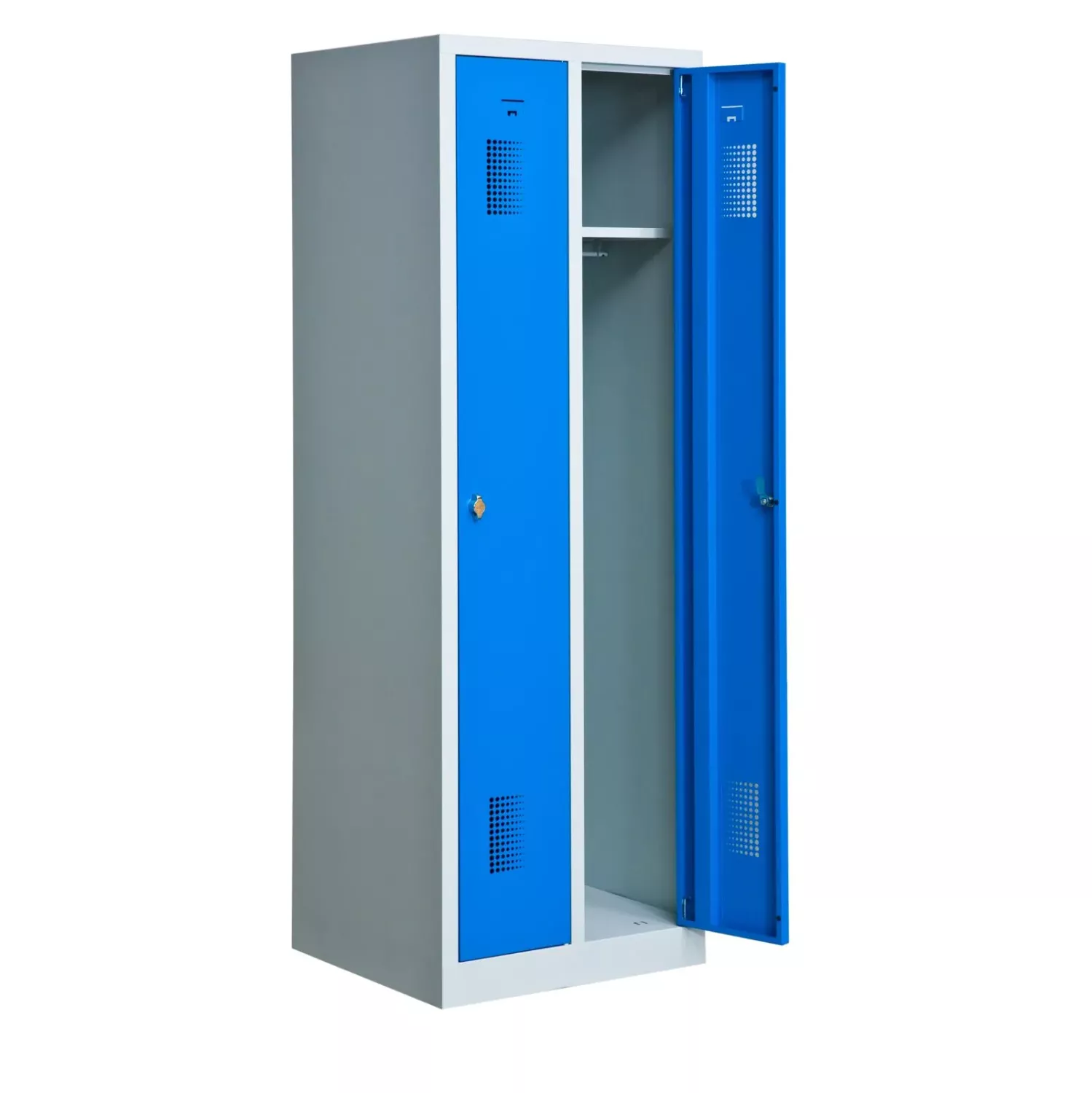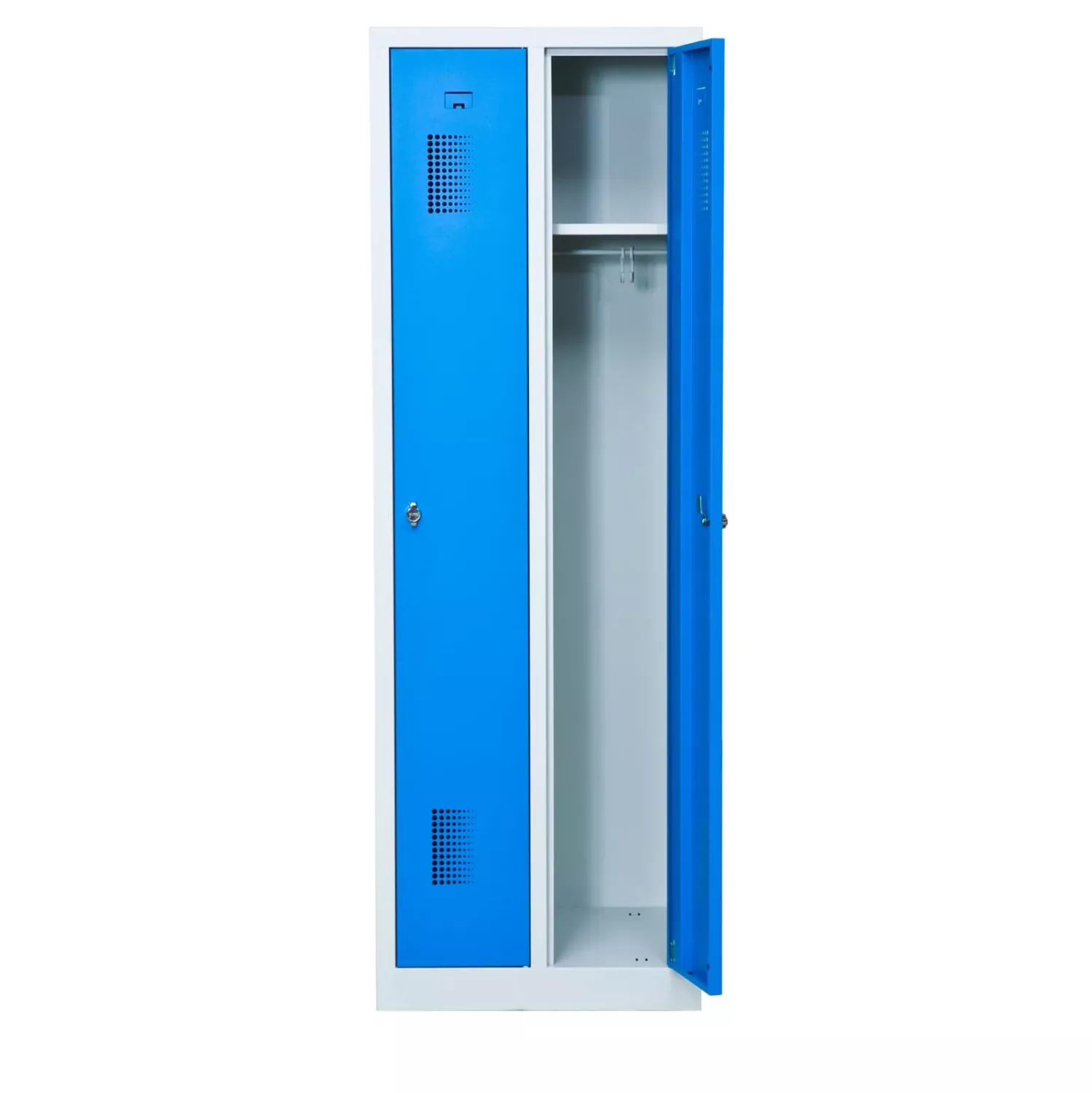 Fint tvådörrars klädskåp i bra kvalité. Skåpet levereras helt färdigmonterat med hänglåsklinka. Skåpet passar utmärkt för t.ex. skola, gym, badhus, omklädningsrum på arbetsplats, mm.