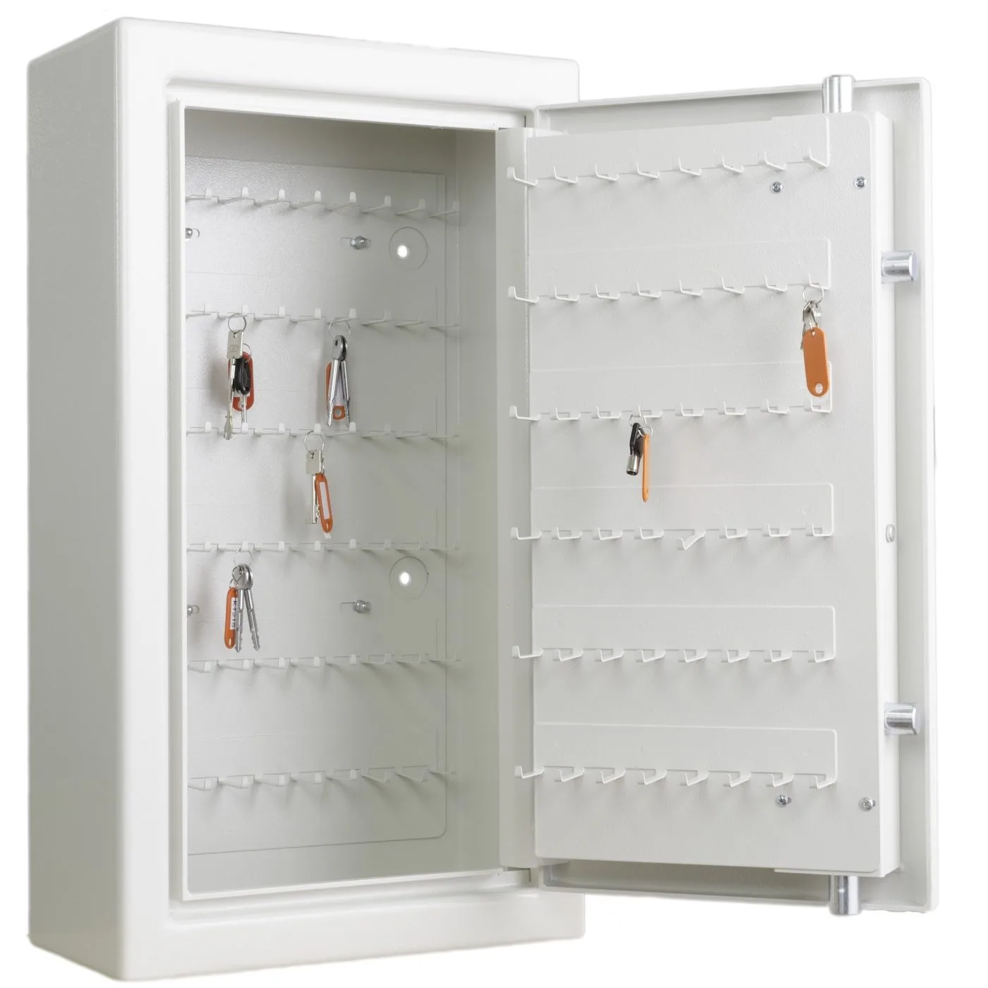 Fint nyckelskåp certifierat enligt standarden SSF 3492. Skåpet är utrustat med totalt 114 långa nyckelkrokar.