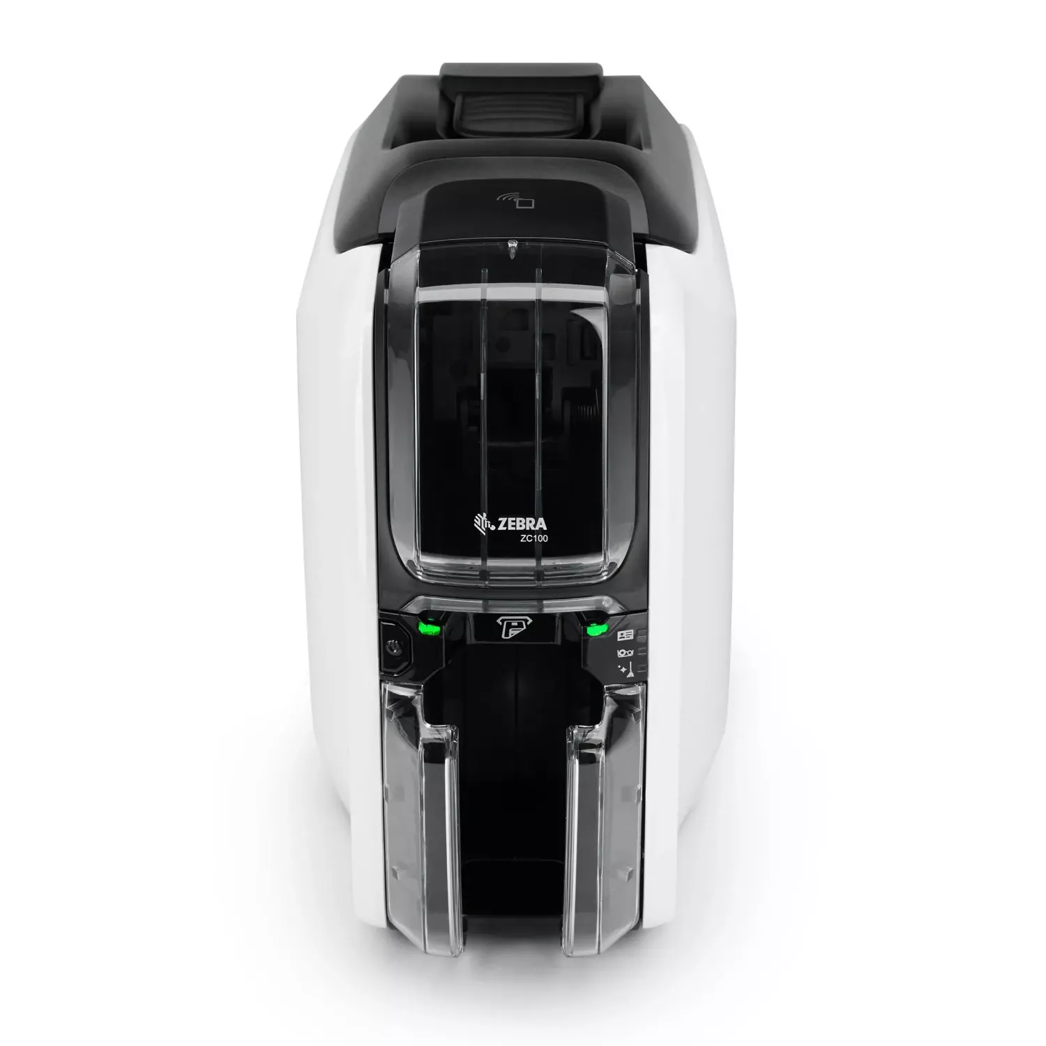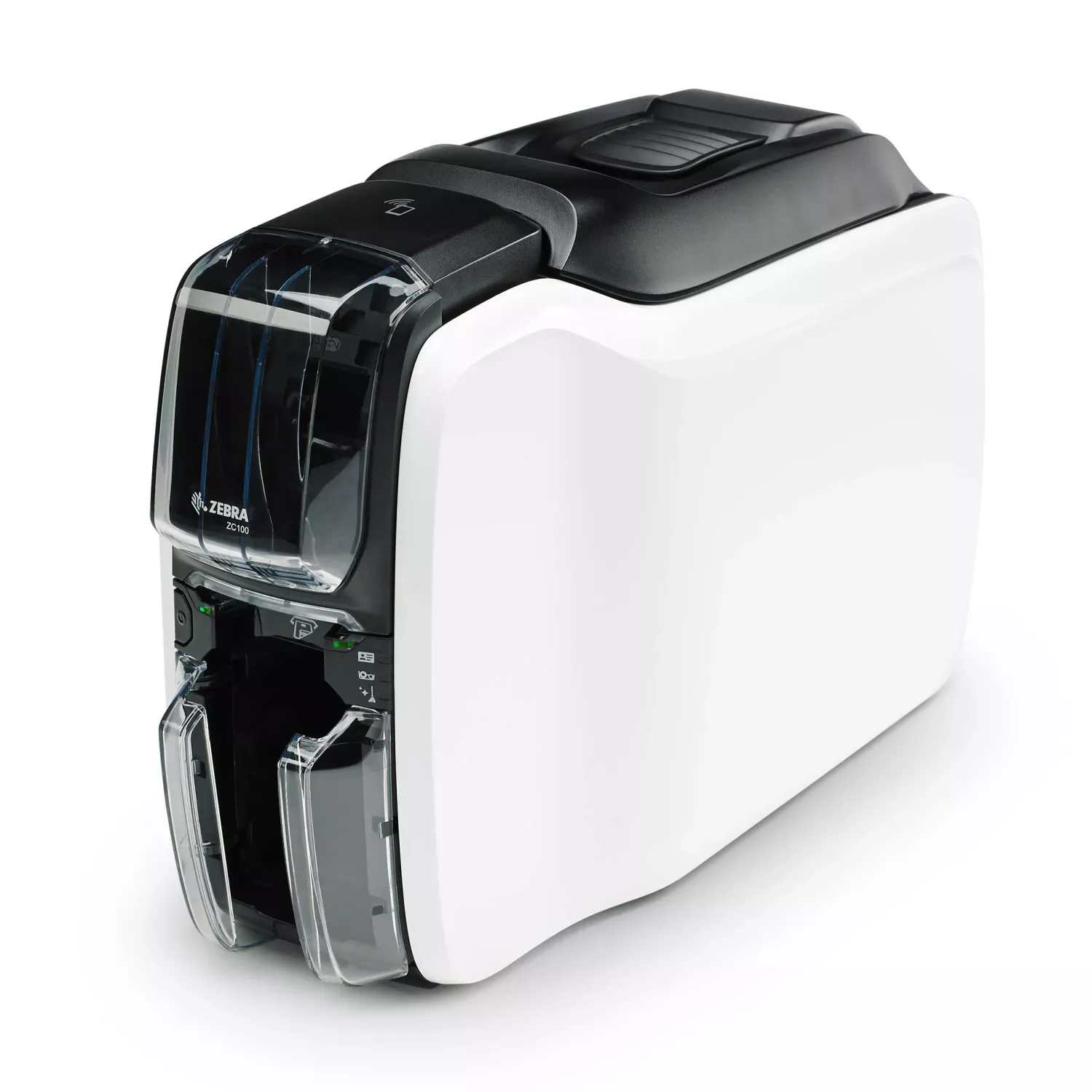 Zebra ZC100 är en skrivare för enkelsidiga utskrifter i färg i 300 dpi och vanlig kreditkortsstorlek. Skrivaren lämpar sig utmärkt för visitkort, besökskort, ID-kort, passerkort, namnskyltar, platsanvisare, mm. Skrivaren ger dig professionella plastkort i helfärg.