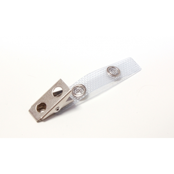 Krokodilklämma med förstärkt vinylband med metallknappar, för ID-kortshållare.