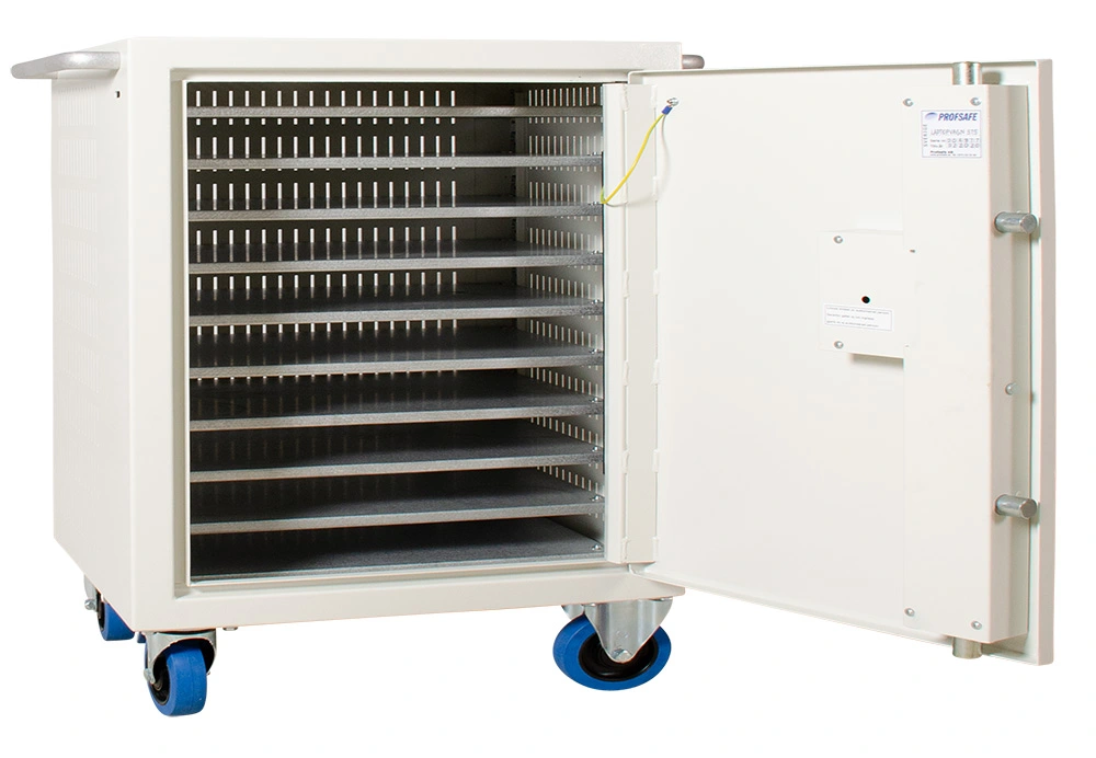Säkerhetsklassat laptopskåp på hjul, rymmer 10 datorer, P-800