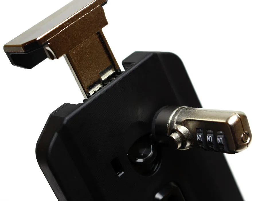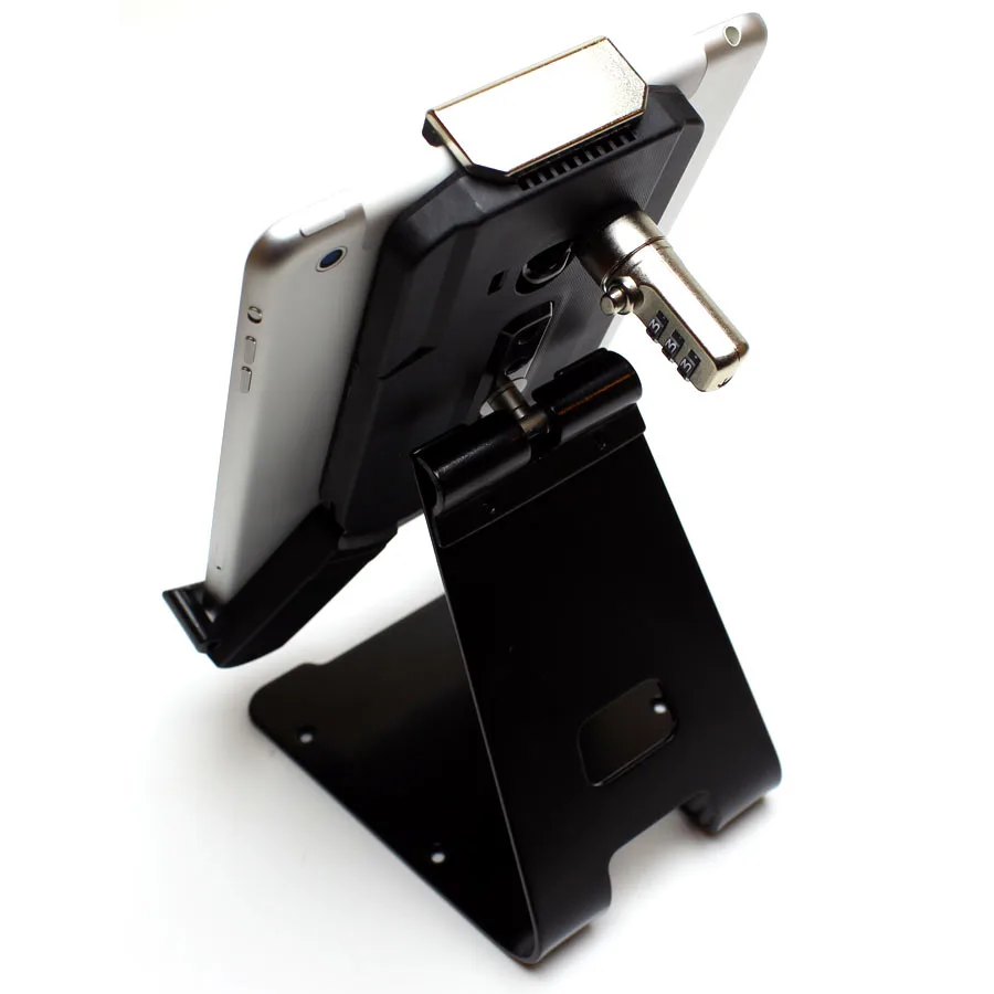 Vendotec-stativet är perfekt för offentliga områden. En robust basplatta med fyra skruvhål gör att du säkert kan förankra stativet vid behov. På baksidan av fästet för surfplattan sitter ett kodlås som används för att säkra plattan i stativet och förhindra att tjuvar tar med sig plattan. Kodlåset använder en robust klo som fästs i hörnen av stativet. Låset ställer du in med en personlig kod. Det är möjligt att fästa en vajer med larm för extra trygghet.