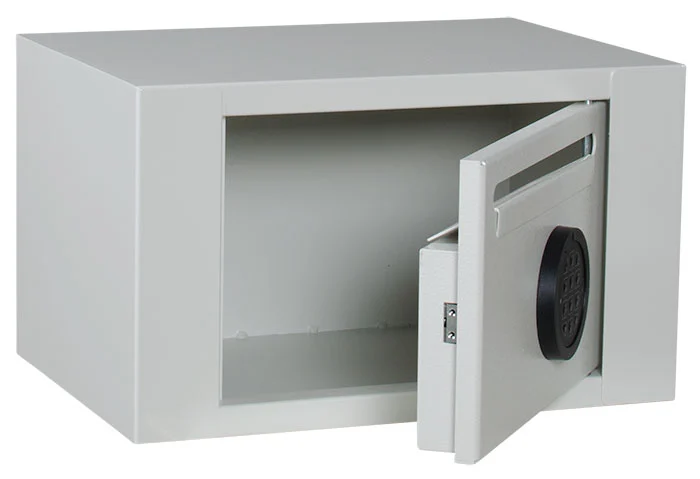 Skåpet är utrustat med ett inbyggt elkodlås med möjlighet till tidsfördröjning, och ett fiskningssäkert fack för deponering av kontanter, kuvert, värdepapper och andra viktiga dokument. Deponeringsskåran är 15 mm hög.