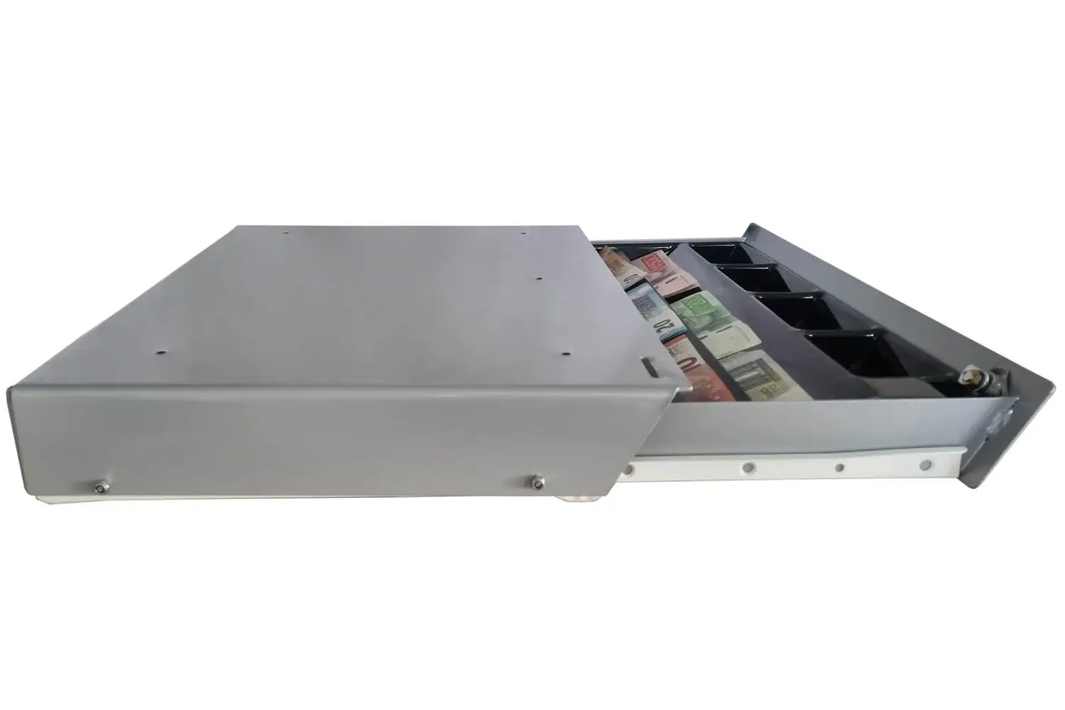 Denna ergonomiska kassalåda är perfekt för användning i apotek, sjukhus, läkare- och tandläkarmottagningar, receptioner, polisstationer, biografer, butiker, kiosker, casino, banker, kontor och många andra platser. Kassalådan öppnas manuellt genom ett enkelt tryck på framsidan. 2 års garanti.