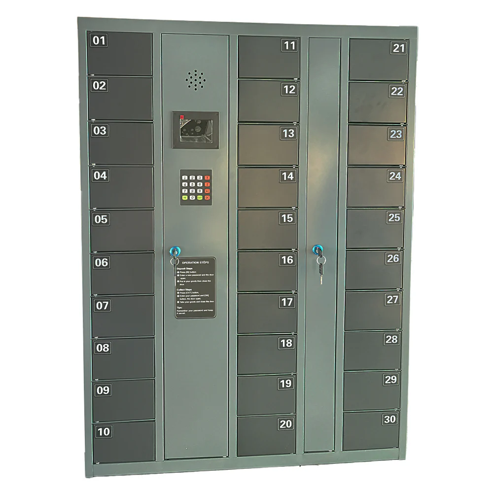 Modernt mobilskåp CESAR, Centralt låssystem, 30 fack med laddning