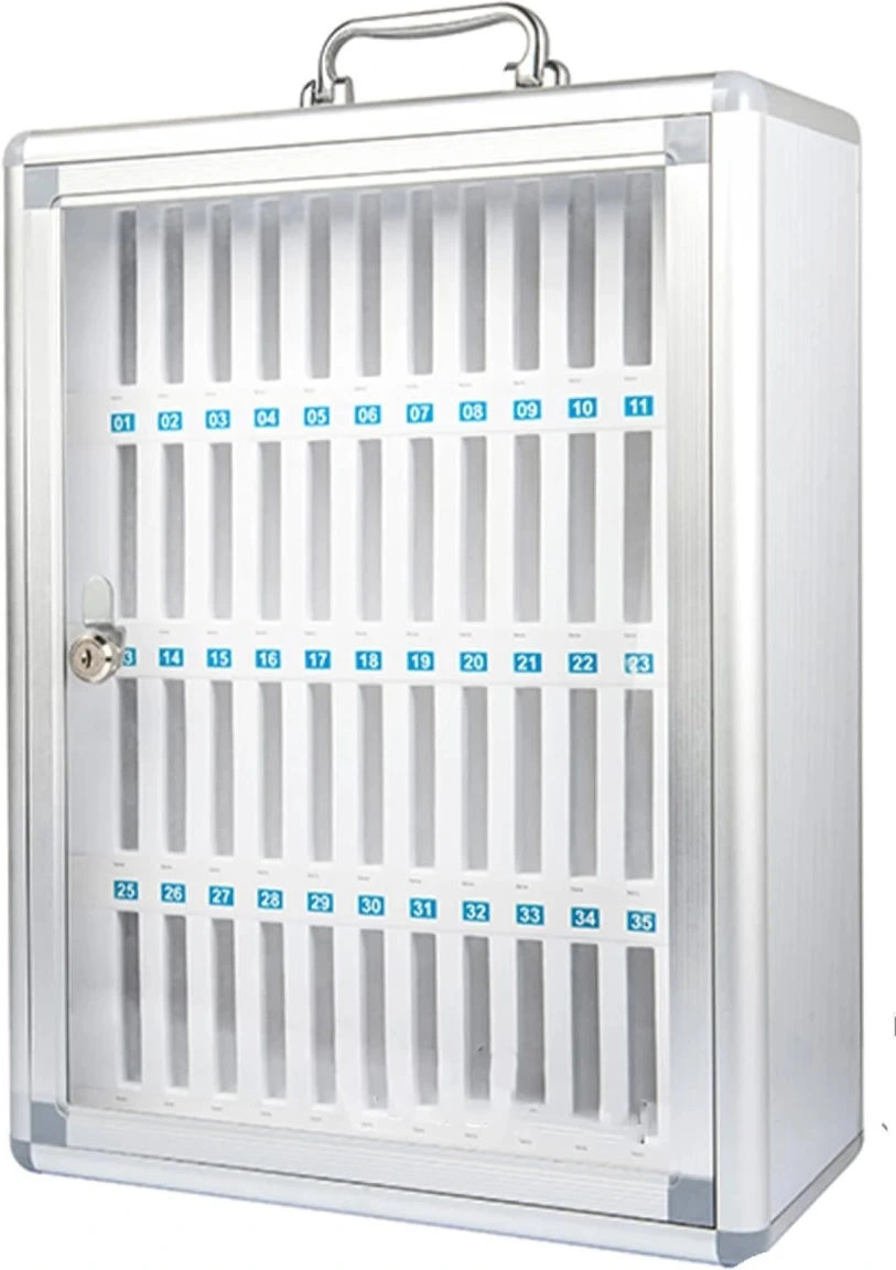 Mobilskåp med plats för upp till 48 mobiler. Går att välja med nyckellås eller elkodlås. Varje fack är numrerat från 1-48. H500xB368xD190 mm.