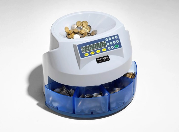 Prisvärd myntsorterare med låg ljudnivå. Anpassad för Svenska Kronor (SEK). Den är både stabil och kompakt i konstruktionen, lättskött och användarvänlig. Tack vare den låga ljudnivå kan man säkert räkna mynt i lokalen utan att dra till sig oönskad uppmärksamhet från förbipasserande eller intilliggande lokaler. Enkel och lätthanterlig kontroll. Räknar och sorterar mynten efter valör.