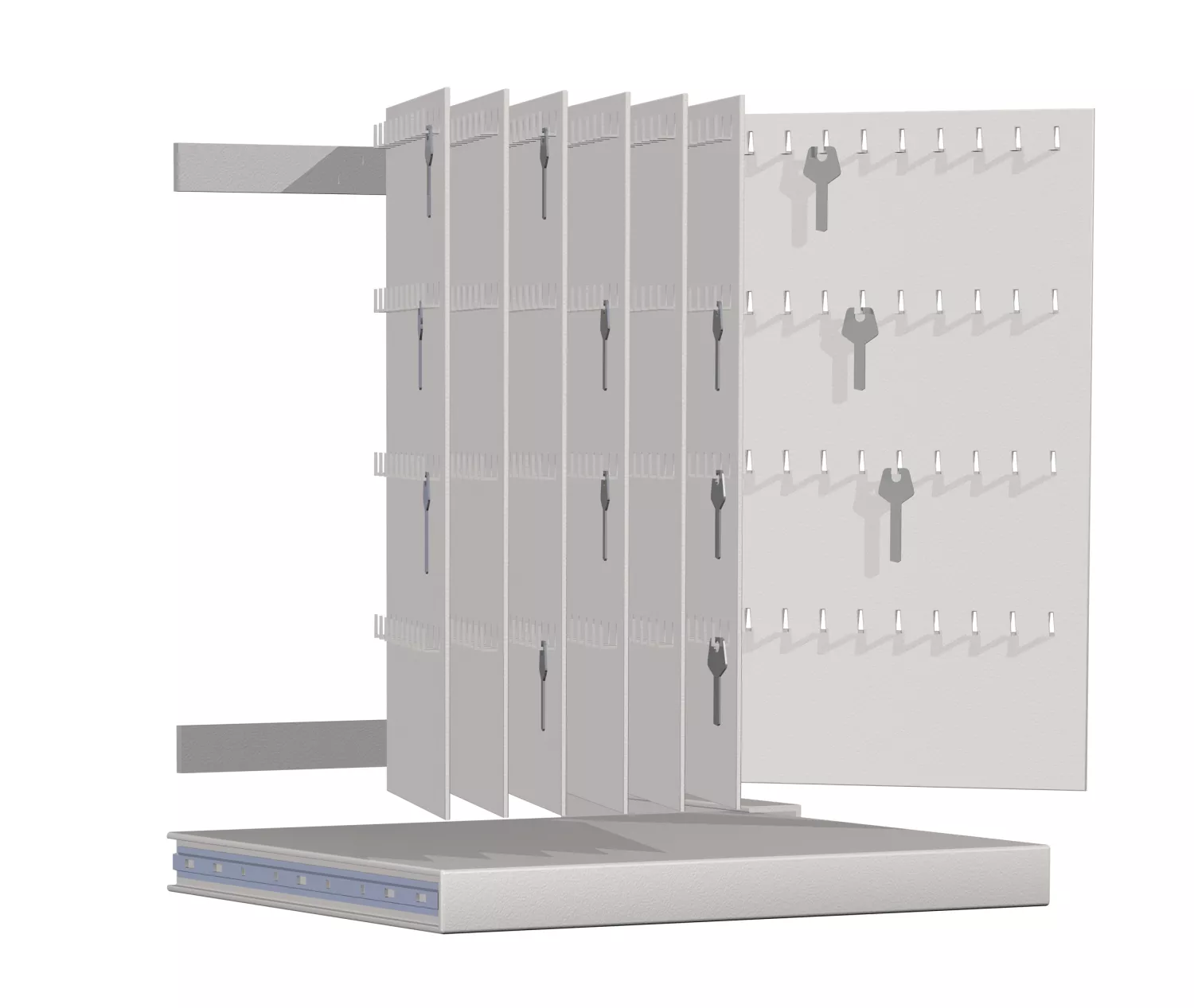 En nyckelinsats med 504 krokar. Insatsen är utrustad med 7 st gängade nyckelvingar med totalt 504 krokar. Nyckelinsatsen är ämnad för montering i säkerhetsskåp ur S-serien av säkerhetsskåp.Höjd: 533 mmBredd: 532 mmDjup: 407 mm